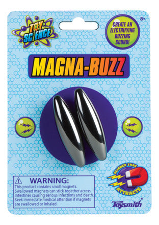 Create and electrifying buzz as you toss these powerful hematite magnets into the air. Set of two 2-1/2" magnets packaged on a blister card.