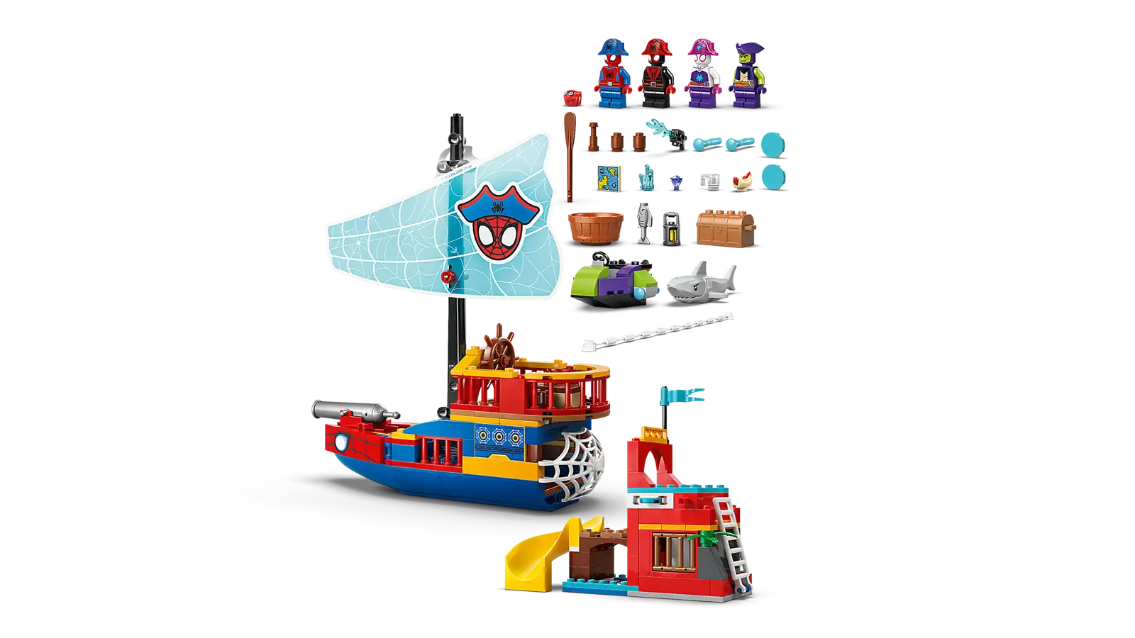 - 4 MINIFIGURES – Join Spidey, Ghost-Spider, Miles "Spin" Morales, Green Goblin and Trace-E for fun on a pirate ship, Spider Island and 2 other small boats in this action-packed building toy