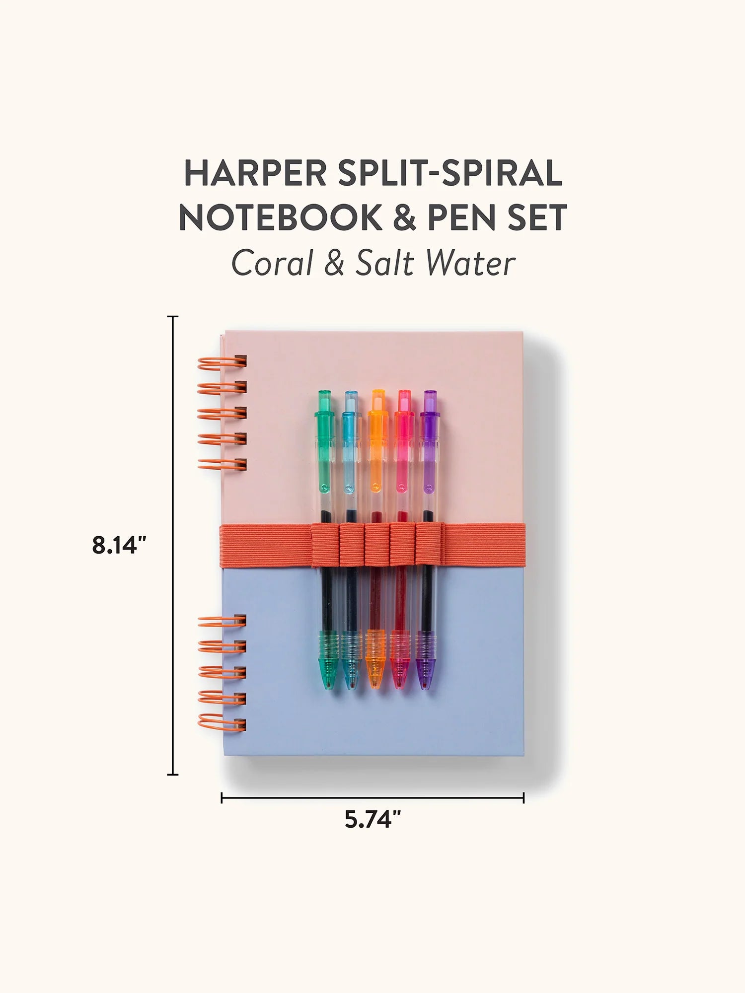 Coral & Salt Water Harper Split-Spiral Notebook & Pen Set