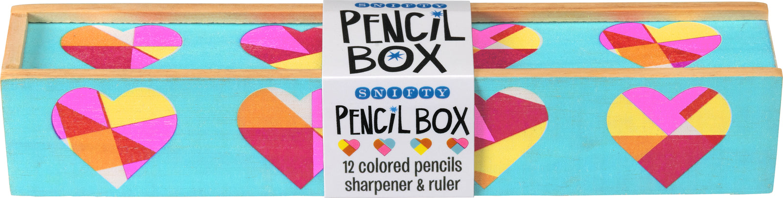 Quilted Hearts Riso Pencil Box + Coloured Pencils