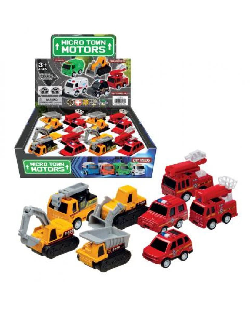 2" Micro Motors Fire/Construction Pull Back Vehicles