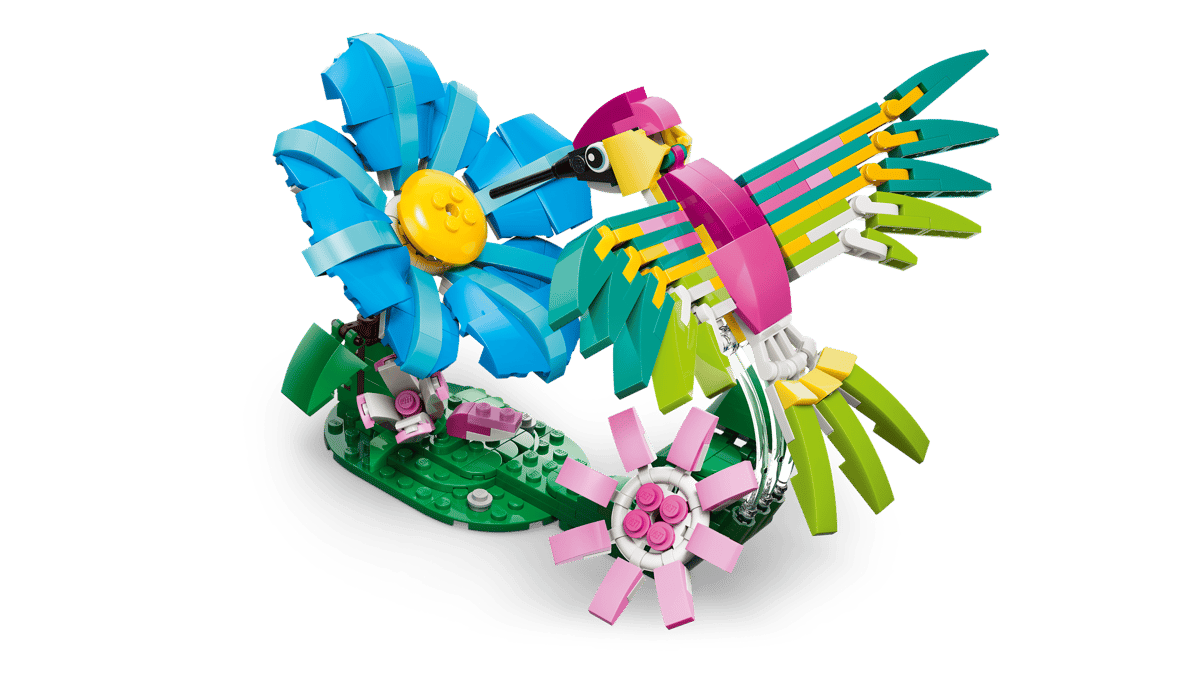 • POSABLE LEGO® ANIMALS – The hummingbird is in a dynamic flying pose and can move its neck, wings and tail, while the butterfly can move its wings