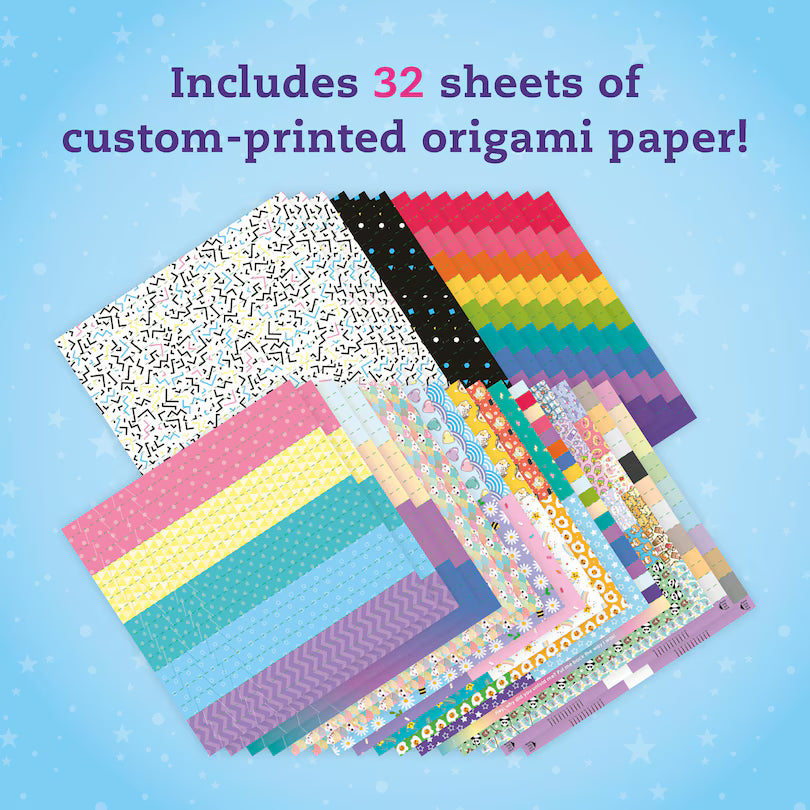 Make a wish! Then make another and another...Here's the iconic wishing star origami craft -- with so much more! Fold the included strips and squares into multiple different designs, including tiny stars, paper chains, adorable cat rings, and tiny boxes to store and fit your creations. There's also a twirly fidget toy to level up your skills, plus funny fortunes to make you smile. Make lucky charms for your nearest and dearest, with tons of colors and patterns to choose from.