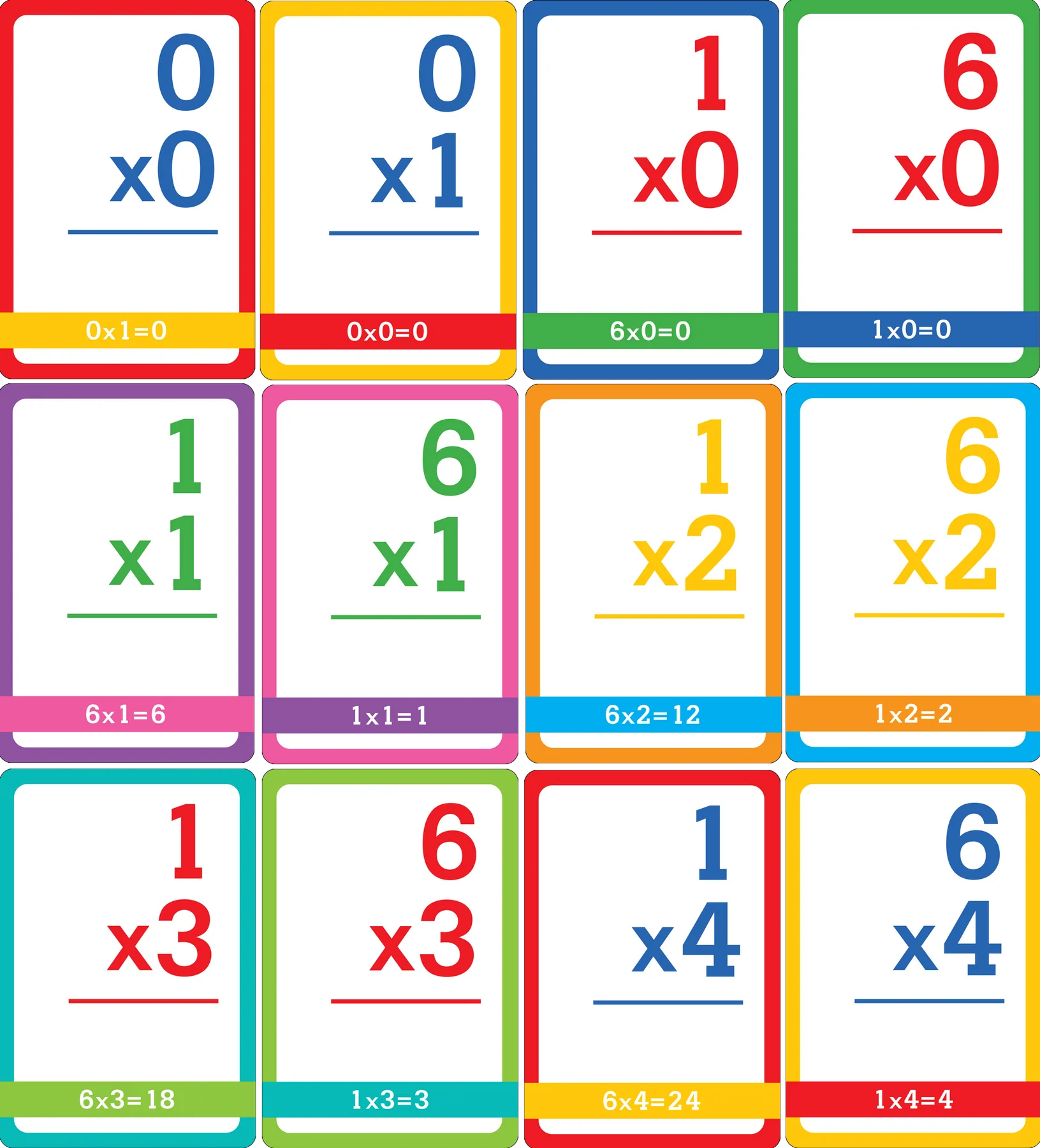 Flash card set will help your child learn the complete times tables up to 10 x 10.
