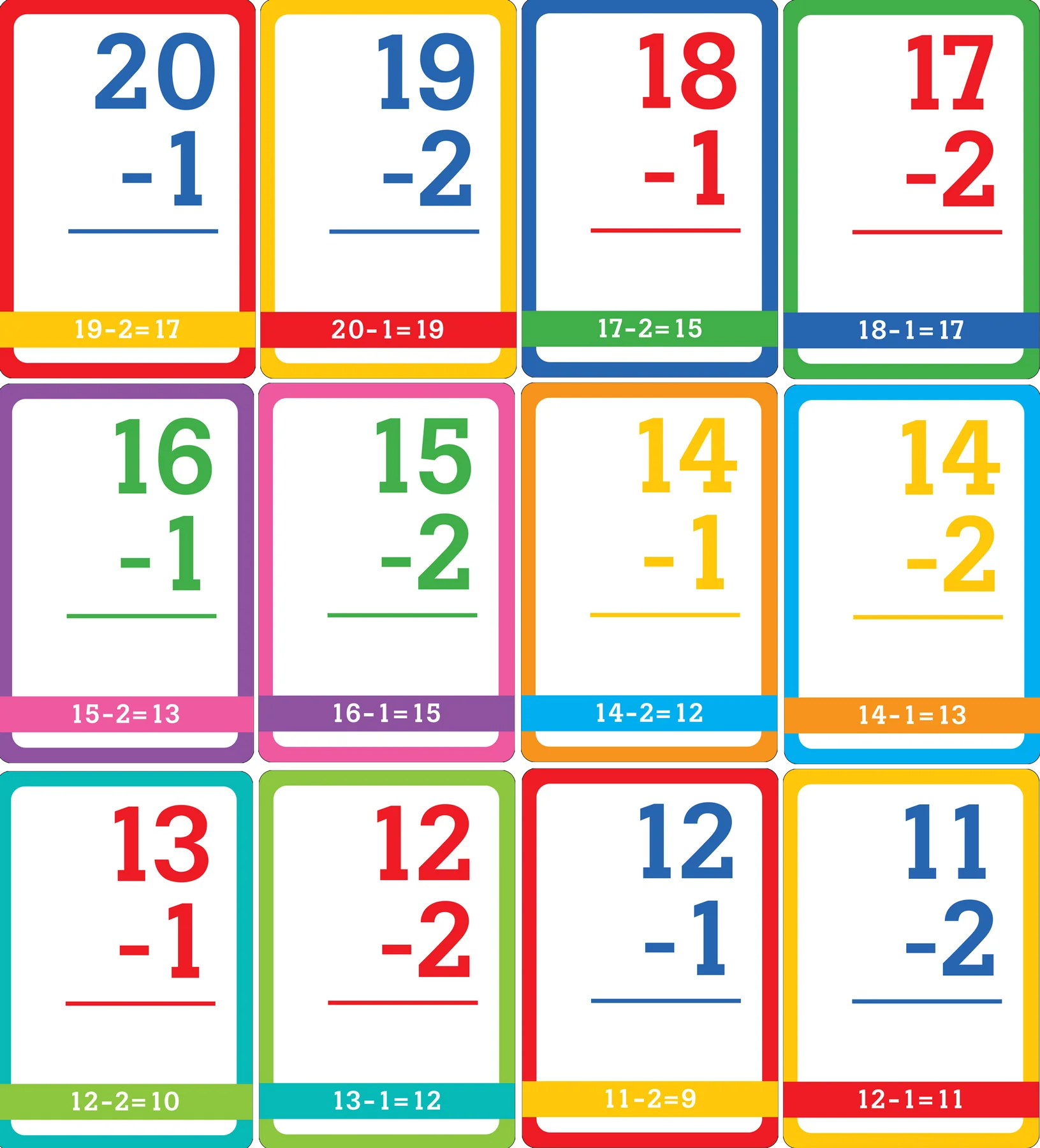 Flash card set will help your child learn to subtract numbers 0 through 9, and master subtraction within 20.