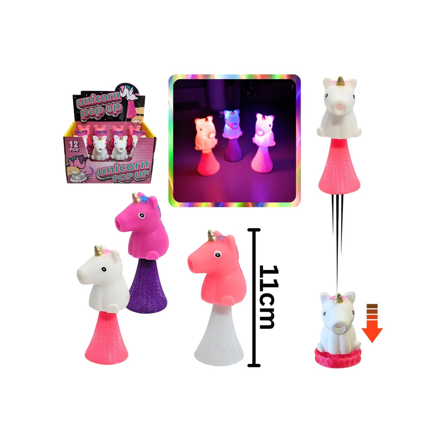 Watch these unicorns pop and flash! Push them down on a hard surface and see how high they jump!