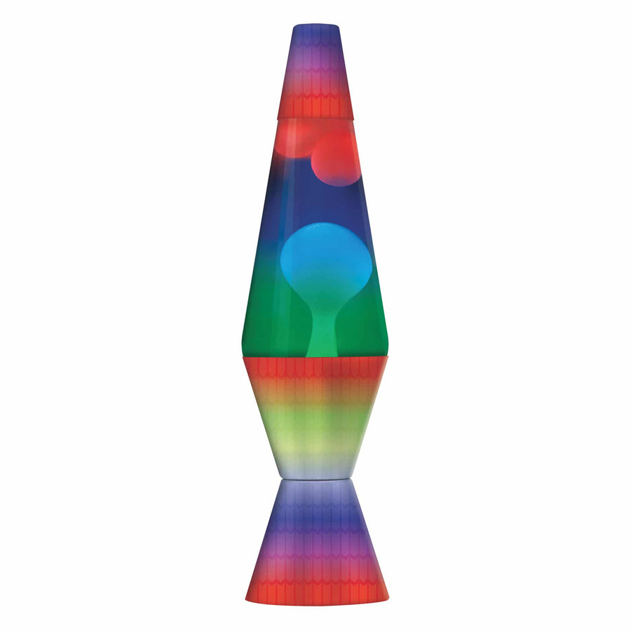 LAVA® Lamps have continued to captivate for over 50 years. It has one of the most recognized, trademarked shapes of all time. LAVA® Lamps produce a soft warm light and mesmerizing visuals of everchanging, moving wax, gently rising up and down. White Wax / Clear Liquid / Tri-Colored Globe / Rainbow Base & Cap. Provides relaxing, soft light. Aluminum base. 15 watt light bulb included. Plugs into a power outlet.
