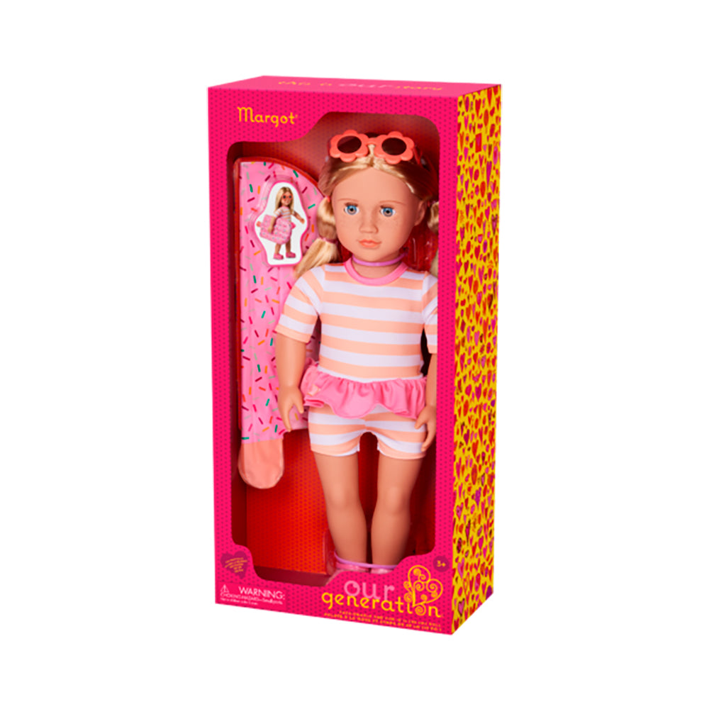 Explore beach day waves and vacay adventures with Our Generation 18-inch doll Margot!
