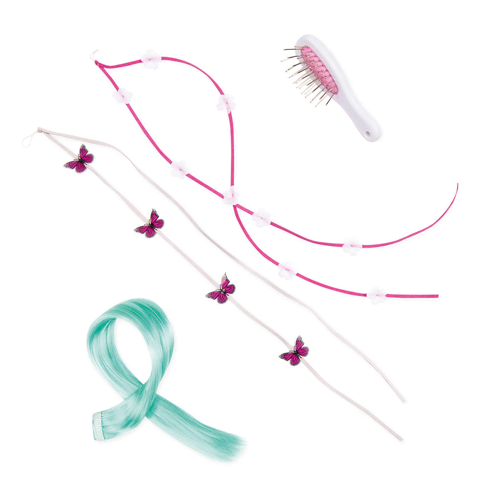 Kids who love playing with hairstyles will have a style stampede with the Palomino Paint Hair Play Horse from Our Generation! This beautiful 20-inch toy horse is the perfect size for your 18-inch dolls to ride on, and comes with lots of styling accessories for hours of Hair Play fun! The Palomino Paint Horse has a long, silky blonde mane and tail that are perfect for brushing and styling. The included round-tipped wire brush makes it easy to keep the horse’s long hair tangle-free. Add one of the hair extensions for a splash of color to your styles, or use the butterfly or flower hair ribbons to give your horse’s style a unique touch. They work great on kids, too! Once your horse has the perfect look, saddle up with the western-style saddle and hit the trails! (Dolls sold separately) 20-inch Hair Play Horse: create a style stampede of colorful looks with the Our Generation Palomino Paint Horse for 18-inch dolls! Features: beautiful brown and white body with an ultra-long blonde mane and tail to style and accessorize! Includes: horse, saddle, bridle & reins, hair extension, floral hair ribbon, butterfly hair ribbon, brush, and style guide. Mix & Match: compatible with most 18-inch dolls and accessories.Â