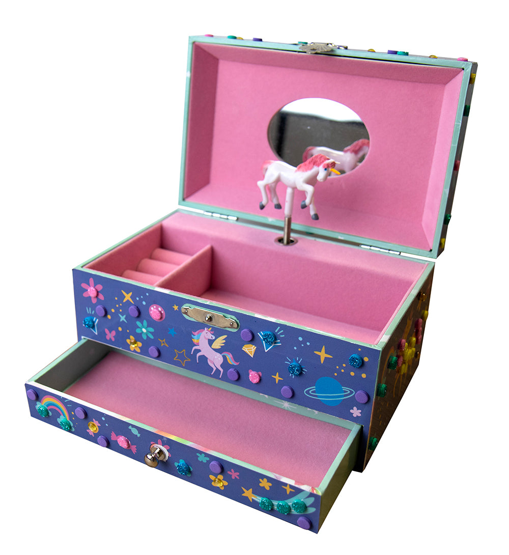 Decorate a beautiful music box! Easy and simple to use, just stick the foams and gems on the corresponding graphics and it's done!
