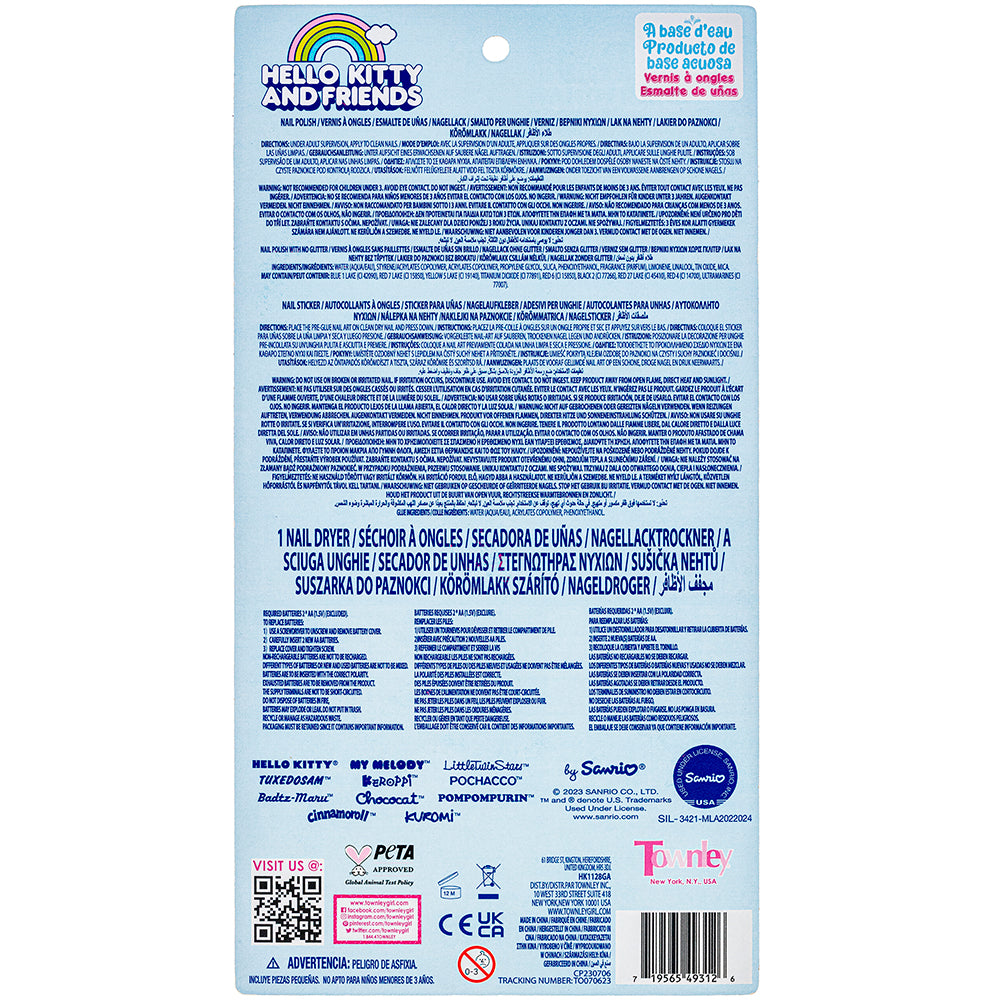 Transform your nails into a world of sparkle and fun with the Hello Kitty Mini Nail dryer Set! Featuring two vibrant nail polishes, a mini nail dryer for quick and easy drying, and a sheet of adorable Hello Kitty nail stickers, this set is perfect for little fashionistas. Safe, non-toxic, and easy to use, it's ideal for creating magical manicures at playdates or just for fun.