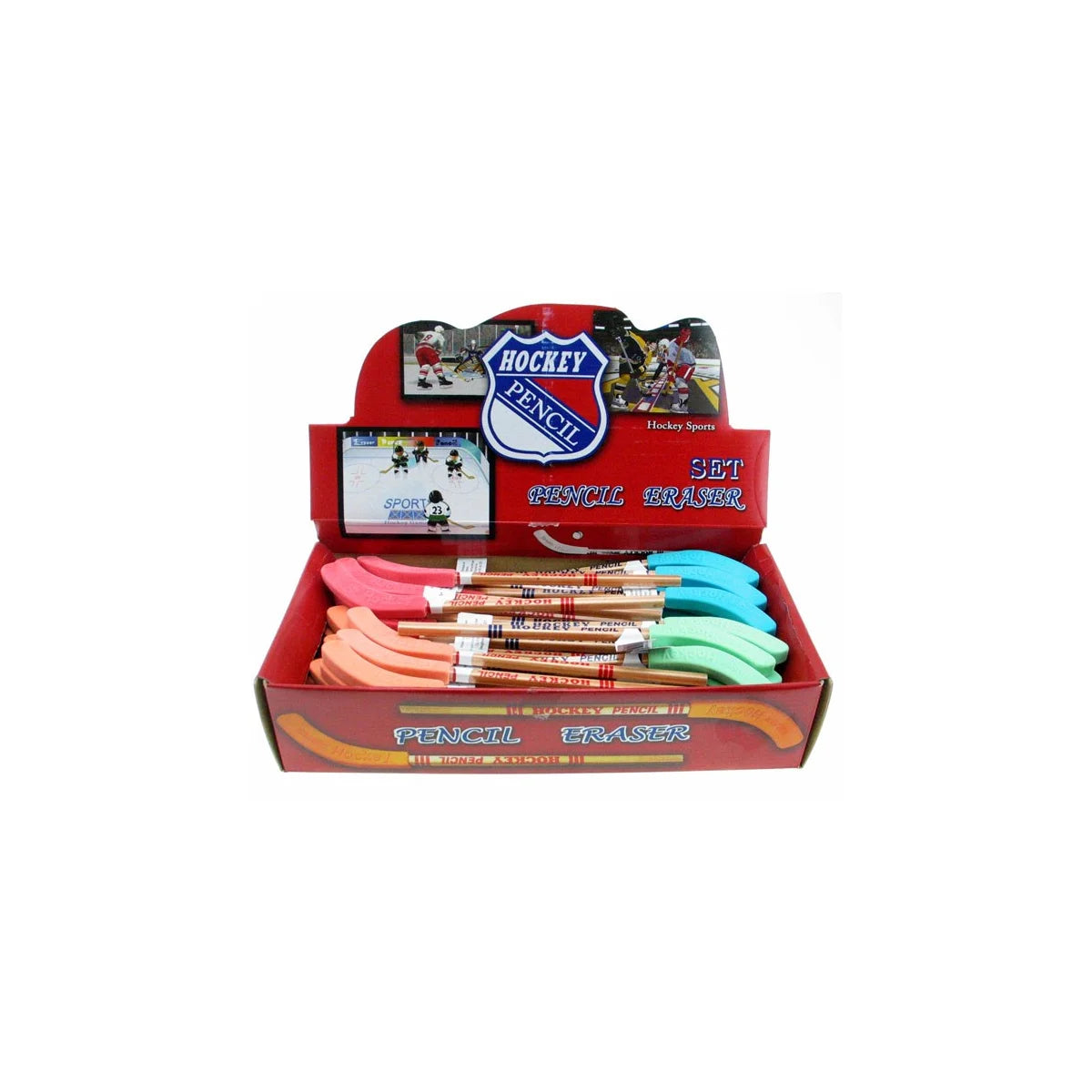 Wood handles and soft rubber eraser tops. Great for any hockey fan or player!