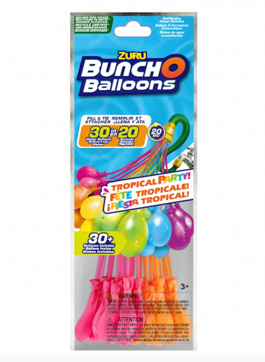 Fill your water balloon battles with a spark of colour with the craziest, most wacky water balloons ever! Fill and tie 30 tropical party water balloons in less than 20 seconds with these sensational self-tying crazy water balloons! With innovative O-ring technology and rapid fill capabilities, say goodbye to the stress and mess of filling individual water balloons and say hello to never ending splash out loud fun! simply connect to a tap or a hose, fill and make hundreds of water balloons with no hand-tying. Take them to a pool party, to your backyard, to a barbecue, the beach or anywhere else to unleash summer no matter where you are! summer's too short, make sure you spend it having splashing refreshing fun!