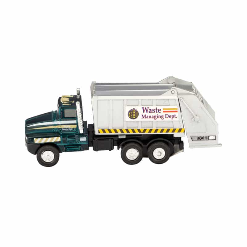 Schylling’s Diecast Sanitation Truck is made with real metal and powered by a pull back motor. Scale 1:43 and 6 inches long.